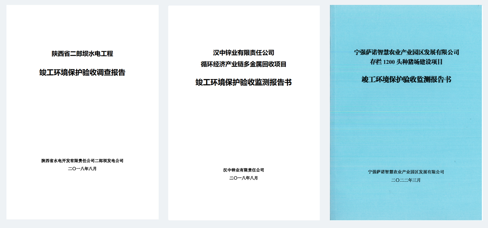 公司主要業績:陜西省二郎壩水電工程竣工環境保護驗收調查報告書、漢中鋅業有限責任公司循環經濟產業鏈多金屬回收項目竣工環境保護驗收監測報告書、寧強薩諾智慧農業產業園區發展有限公司存欄1200頭種豬場建設項目竣工環境保護驗收監測報告書、陜西漢中鋼鐵集團有限公司產能置換轉型升級短流程煉鋼工藝改造工程項目竣工環境保護驗收監測報告書、南鄭縣紅寺湖大孤山生態休閑旅游綜合開發(生態酒店)項目竣工環境保護驗收調查報告書、漢中市口腔醫院五樓住院病區及手術室改造項目竣工環境保護驗收監測報告表、陜西東方航空儀表有限責任公司旋翼機飛行控制系統產業化建設項目竣工環境保護驗收監測報告表、漢中褒河物流園區建設管理委員會辦公室褒河物流園區污水處理站及中水回用設施建設項目竣工環境保護驗收監測報告表等。